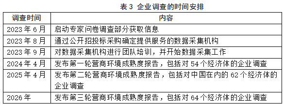 (四)調(diào)查過程 調(diào)查開展前,世行將對第三方調(diào)查機構(gòu)進行系統(tǒng)科學(xué)的培訓(xùn),調(diào)查實施時將邀請被調(diào)查企業(yè)的高管、股東,或者人力資源總監(jiān)和財務(wù)總監(jiān)等專業(yè)人員對問卷進行作答,如出現(xiàn)無效作答或者回答矛盾等問題,將通過反復(fù)溝通,重新訪談、填答的方式以保證問卷結(jié)果的真實性和科學(xué)性。詳細時間安排見表3。