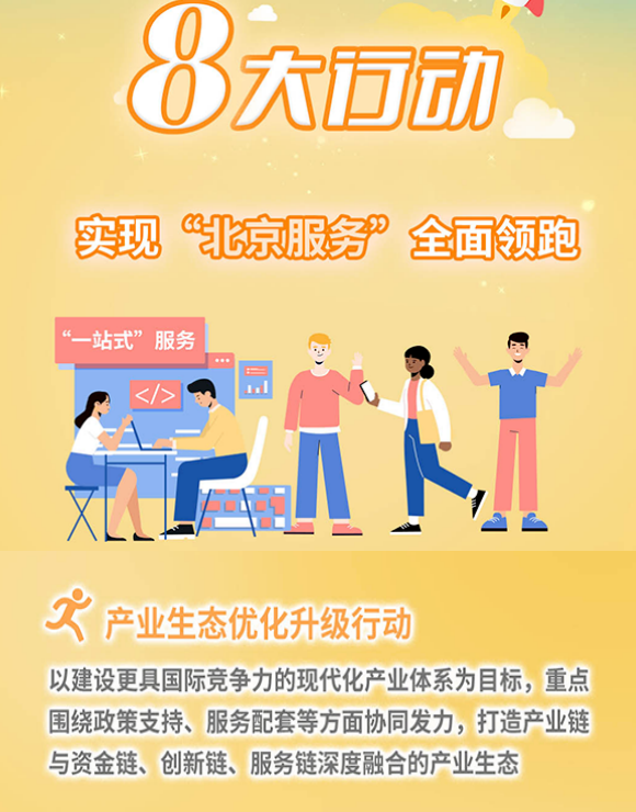 2023年12月,北京市委、市政府印發(fā)《關(guān)于北京市全面優(yōu)化營商環(huán)境打造“北京服務”的意見》,標志著營商環(huán)境進入全面整體優(yōu)化升級的新階段。在北京壓茬推行6個版本改革、累計推出1270多項措施的基礎上,“北京服務”從推動企業(yè)“點”上辦事審批服務改革,向優(yōu)化產(chǎn)業(yè)發(fā)展全鏈條管理服務拓展,打造產(chǎn)業(yè)鏈與資金鏈、創(chuàng)新鏈、服務鏈深度融合的產(chǎn)業(yè)生態(tài);重點圍繞政策支持、服務配套等方面協(xié)同發(fā)力,“一鏈一策”制定產(chǎn)業(yè)鏈配套服務政策,吸引更多企業(yè)和項目落地。特別是針對新業(yè)態(tài)新模式發(fā)展,建立市級綜合審批機制,提供“一站式”集成服務,推動跨部門協(xié)同改革創(chuàng)新。