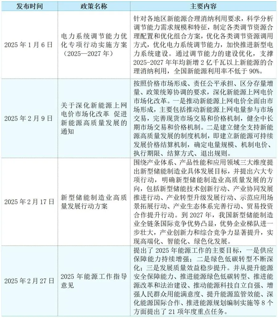表1 2025年以來我國發(fā)布的儲(chǔ)能相關(guān)政策匯總