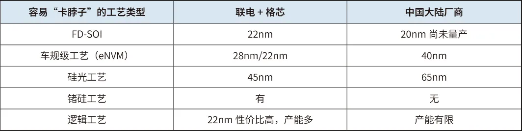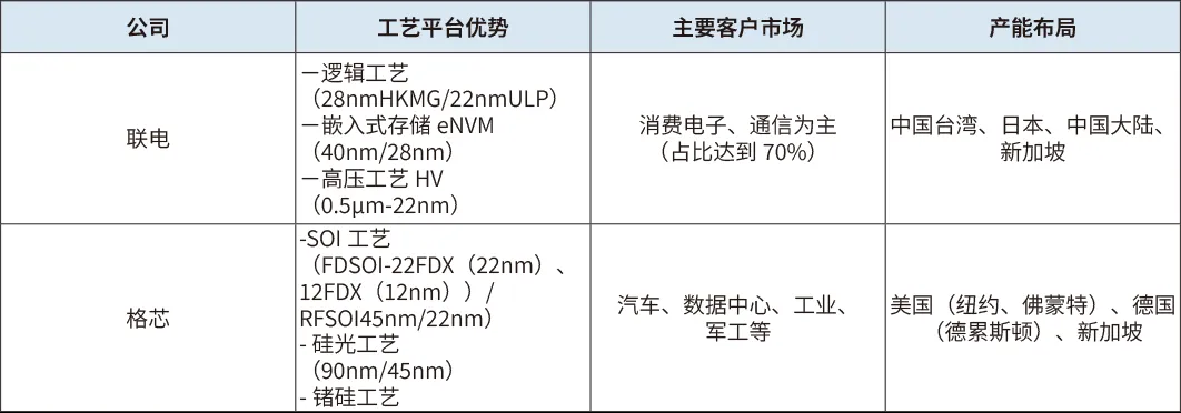 表2 聯(lián)電、格芯的工藝平臺優(yōu)勢