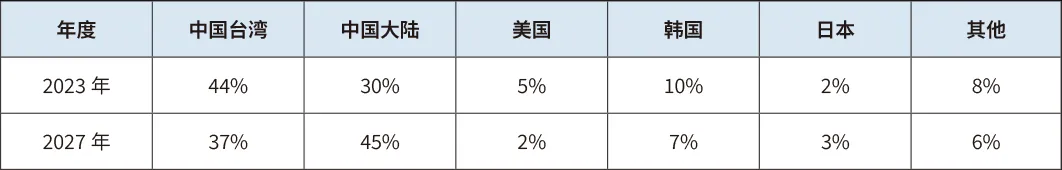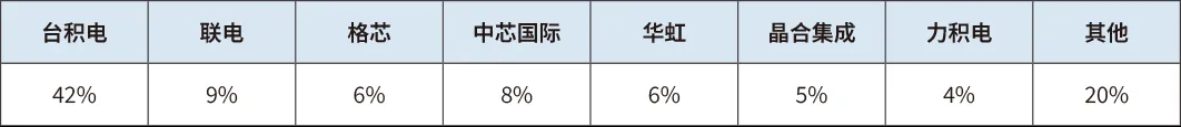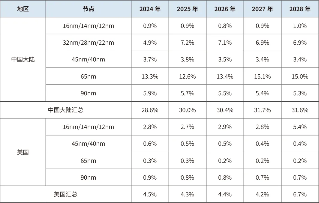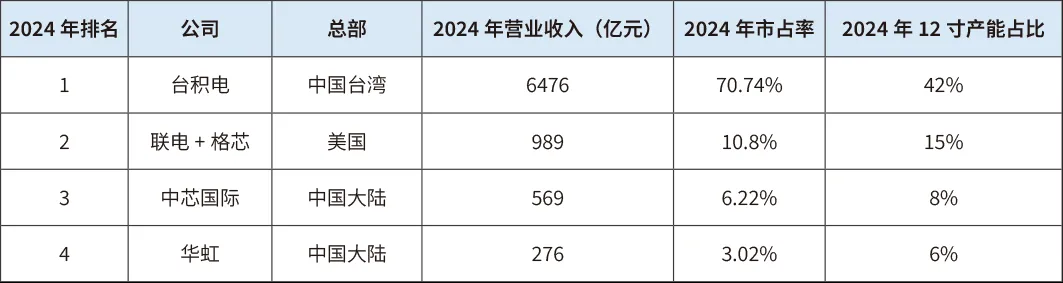 表5 2024年中美及中國臺灣各集成電路代工企業(yè)12寸代工產(chǎn)能占比
