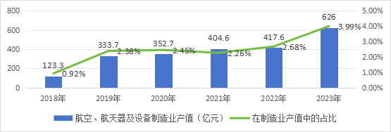 2《上海民用航空產(chǎn)業(yè)鏈建設(shè)三年行動(dòng)計(jì)劃(2022-2024年)》提出,到2024年,民用航空產(chǎn)業(yè)產(chǎn)值規(guī)模超過600億元;上海統(tǒng)計(jì)局:2019年,本市航空裝備生產(chǎn)持續(xù)增長(zhǎng),實(shí)現(xiàn)工業(yè)總產(chǎn)值296.55億元,比上年增長(zhǎng)0.7%。其中,飛機(jī)制造業(yè)保持平穩(wěn)增長(zhǎng)拉動(dòng)航空裝備總產(chǎn)值增長(zhǎng)3.0個(gè)百分點(diǎn)