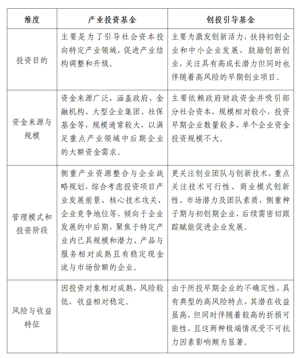 目前政府投資基金主要分為產(chǎn)業(yè)投資基金和創(chuàng)投引導(dǎo)基金,二者在多個維度上存在顯著差異。