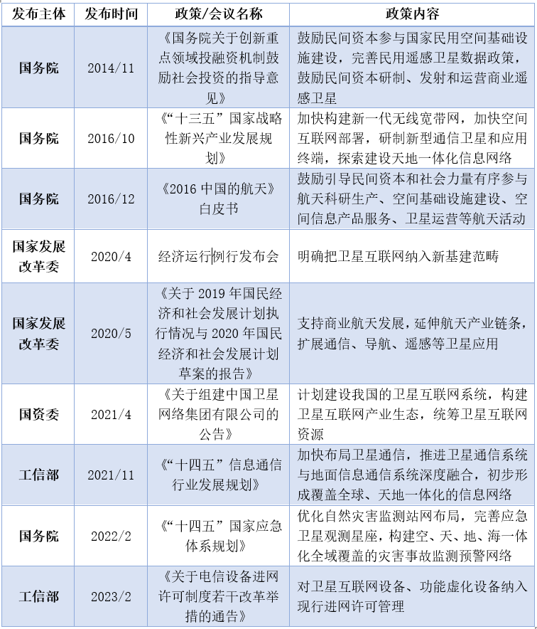 表1  我國衛星互聯網產業發展相關政策