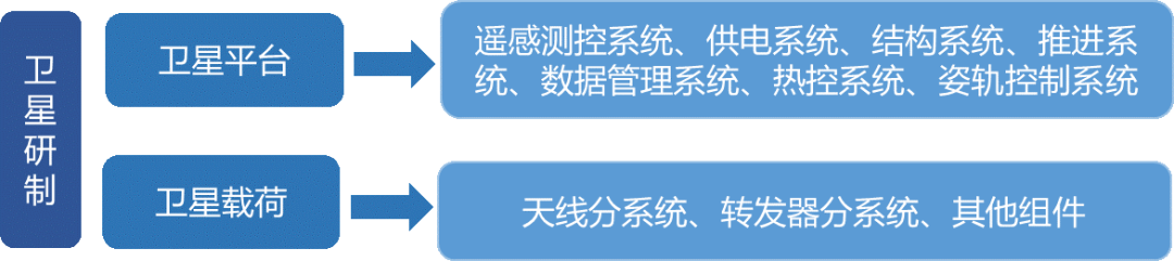 衛星研制環節包括衛星平臺、衛星載荷,具體細分領域如下。