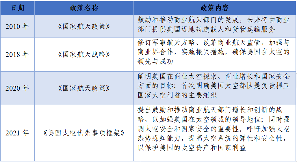 表2 美國衛(wèi)星通信領(lǐng)域部分政策