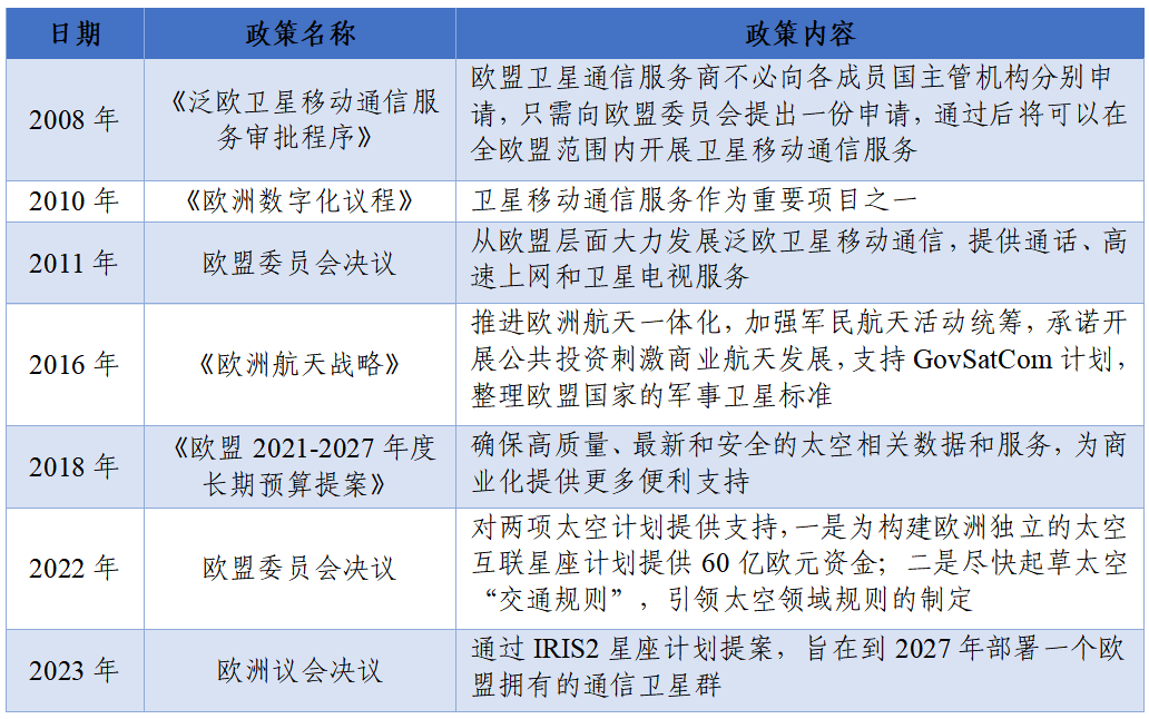 (二)歐盟衛(wèi)星互聯(lián)網(wǎng)產(chǎn)業(yè)政策