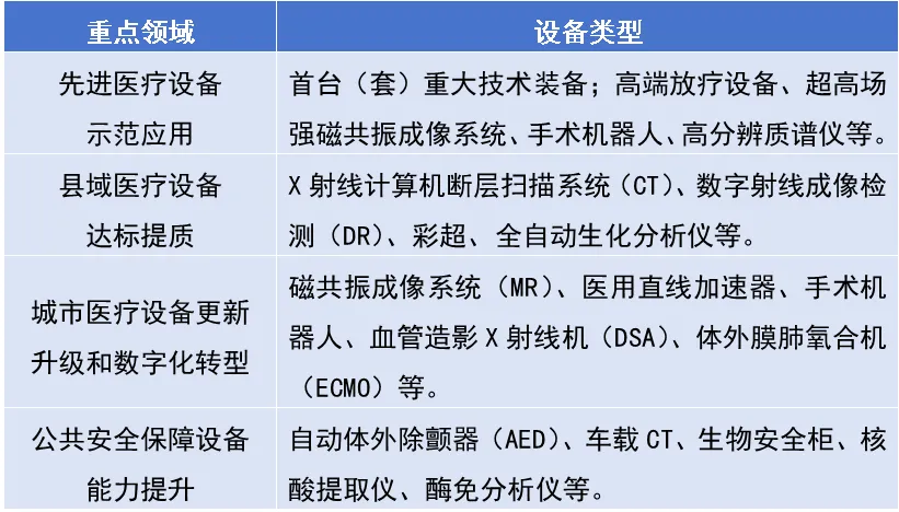 表1-1 醫(yī)療衛(wèi)生領域設備更新重點