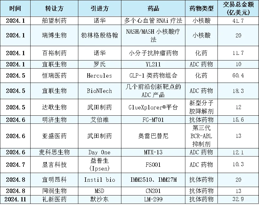 表1 2024年超十億美元出海的國產創(chuàng)新藥榜單