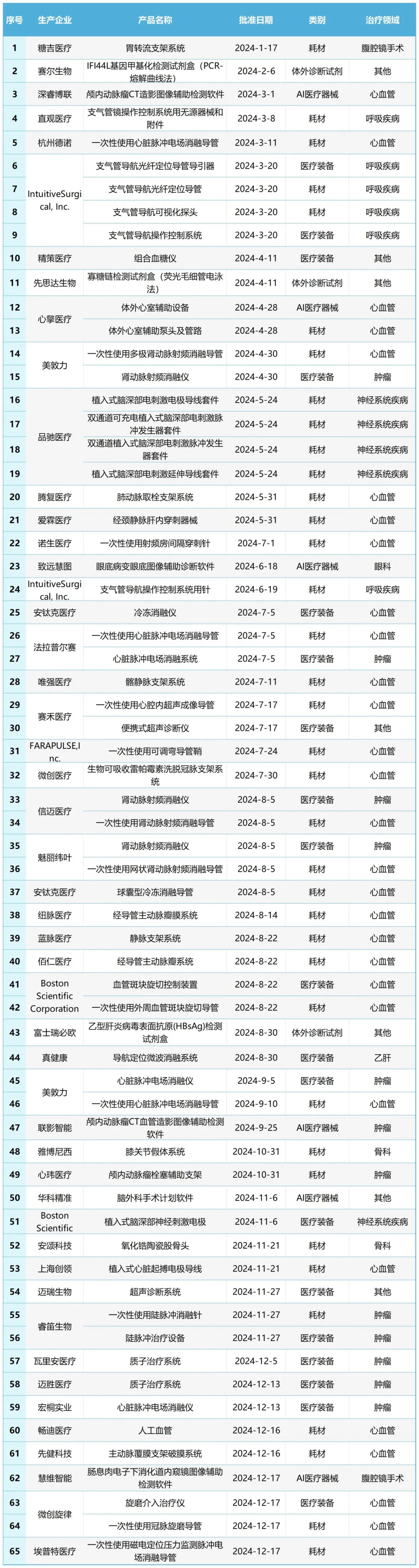 附表:2024年獲批上市創(chuàng)新醫(yī)療器械清單