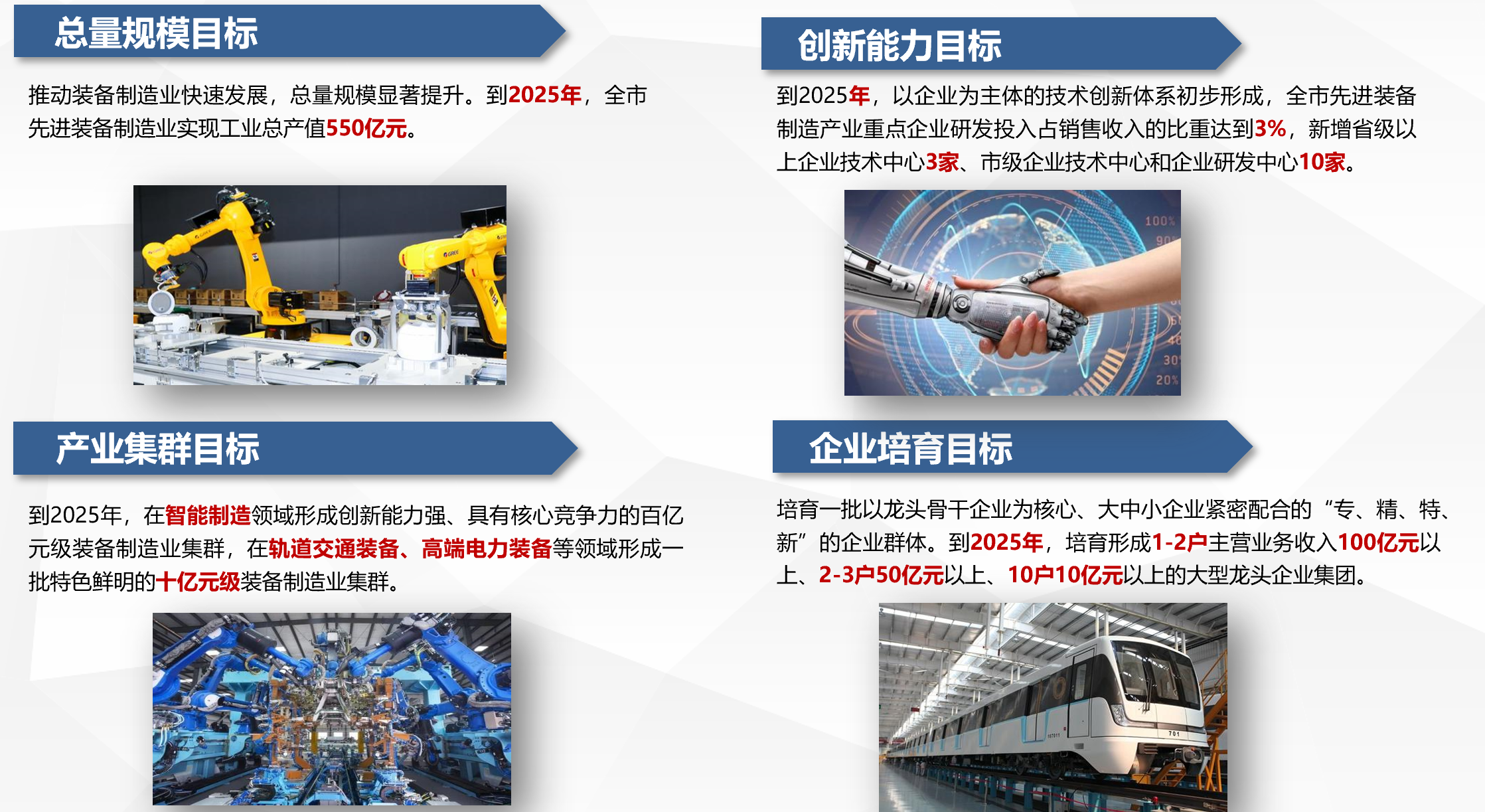 《北京市裝備制造產(chǎn)業(yè)振興規(guī)劃》、《北京亦莊機(jī)器人產(chǎn)業(yè)創(chuàng)新示范區(qū)產(chǎn)業(yè)發(fā)展規(guī)劃》、《昆明市先進(jìn)裝備制造業(yè)發(fā)展規(guī)劃(2016-2020年)》《河北省遵化市應(yīng)急裝備特色產(chǎn)業(yè)集群發(fā)展規(guī)劃(2019年—2025年)》、《北京市軌道交通產(chǎn)業(yè)發(fā)展規(guī)劃》