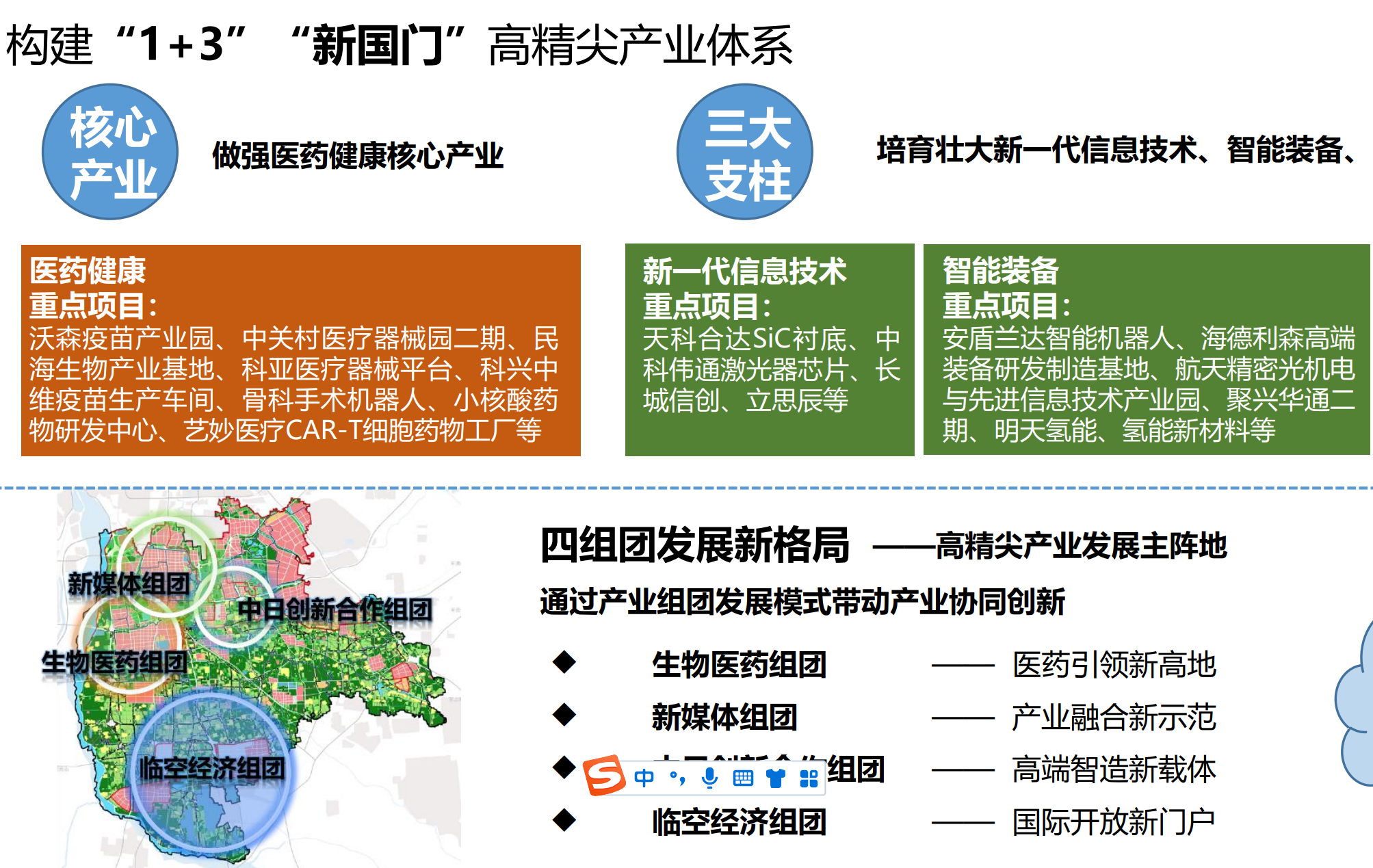 規(guī)劃梳理總結(jié)大興區(qū)高精尖產(chǎn)業(yè)現(xiàn)狀和形勢(shì),提出大興區(qū)未來(lái)發(fā)展思路目標(biāo)、重點(diǎn)方向和布局、發(fā)展路徑及保障措施。即把握北京“兩區(qū)”建設(shè)重大契機(jī),深入實(shí)施“產(chǎn)業(yè)強(qiáng)區(qū)”戰(zhàn)略,充分發(fā)揮機(jī)場(chǎng)交通樞紐新門戶作用,做強(qiáng)醫(yī)藥健康核心產(chǎn)業(yè),培育新一代信息技術(shù)、智能裝備和科技服務(wù)支柱產(chǎn)業(yè),構(gòu)建“1+3”高精尖產(chǎn)業(yè)體系,打造科技創(chuàng)新“新高地”、首都發(fā)展“新空間”、對(duì)外開放“新門戶”。